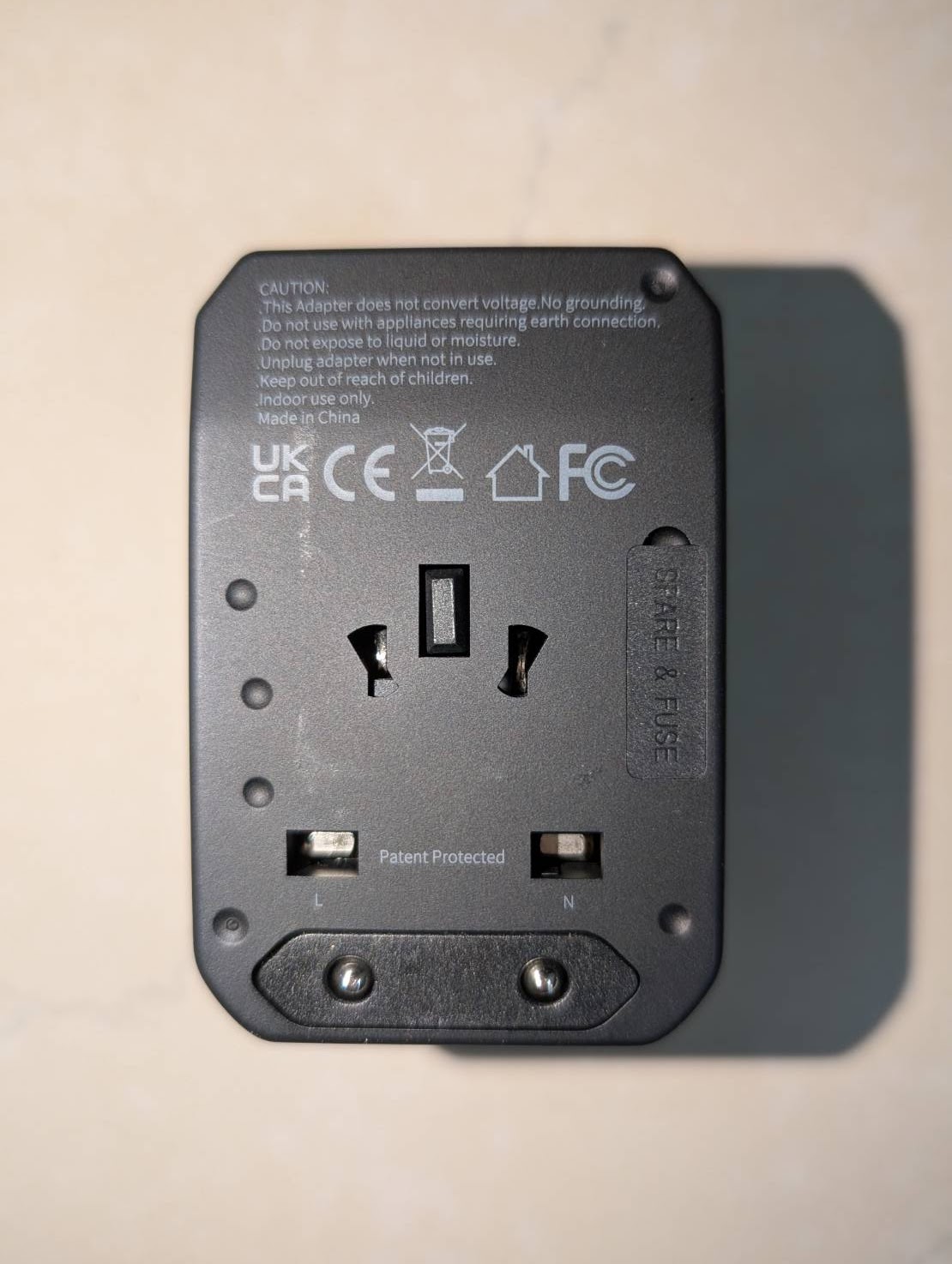 實際出差/出遊用到萬用插座轉換器的機率不多,因為飯店大多可以借用。之前把收集到的都丟到行李箱,最近我弟送我一個幣安的萬用插座轉換器,才知道已經從單純機構設計變成有晶片了,多了 PD Type C 孔充電。